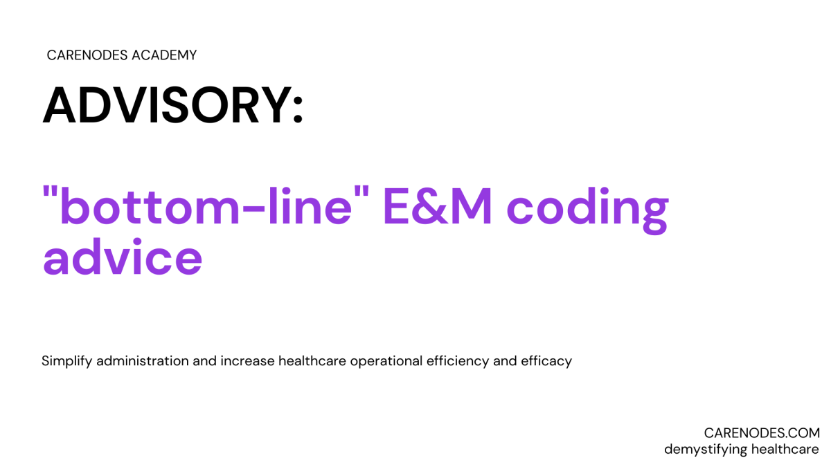 The Carenodes medical executives offer the following highly simplified but useful “bottom-line” E&M coding advice.
